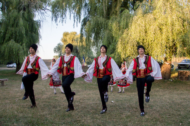 Young people started the performance with jokes - a Bulgarian-style stand-up show. The language barrier did not stop us from laughing and having fun together with everyone. The language of dance was much clearer: girls in bright sarafans with ringing coins and beads on the headdress walked arm in arm with the guys also dressed in national costumes. The Bulgarian folklore music differs greatly from the Pridnestrovian one with the predominance of bagpipes and drums.