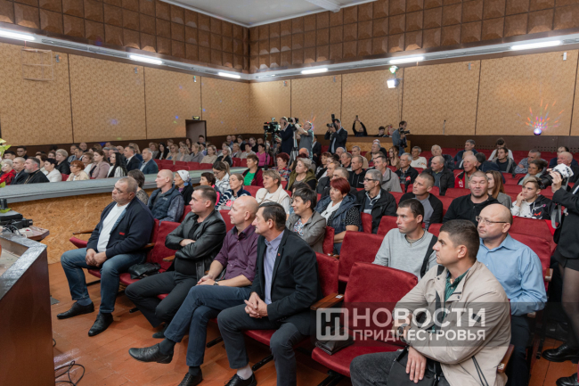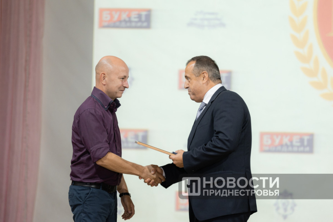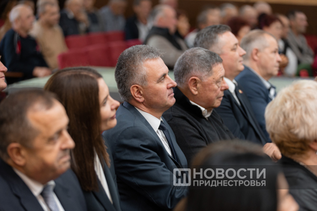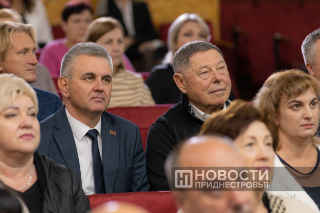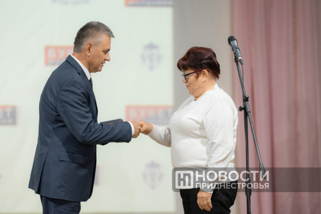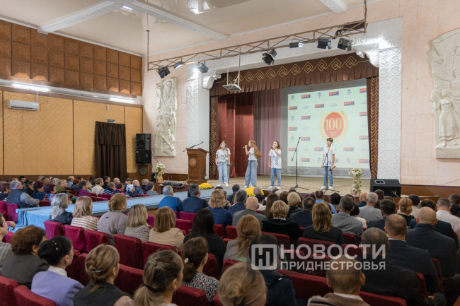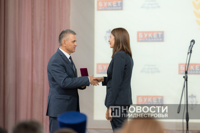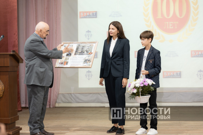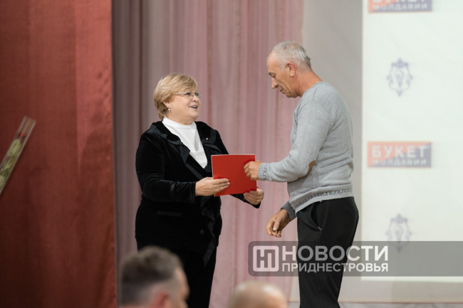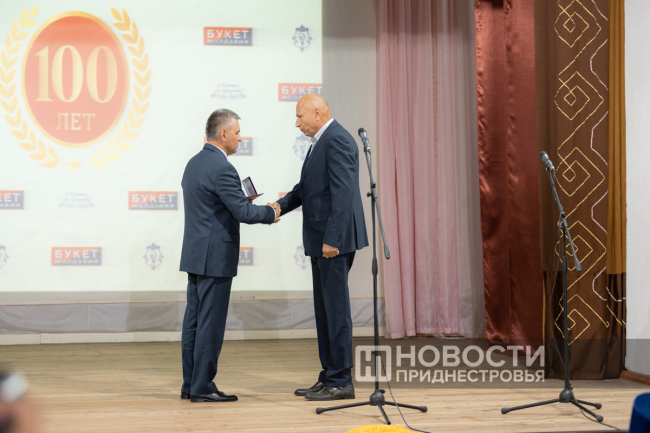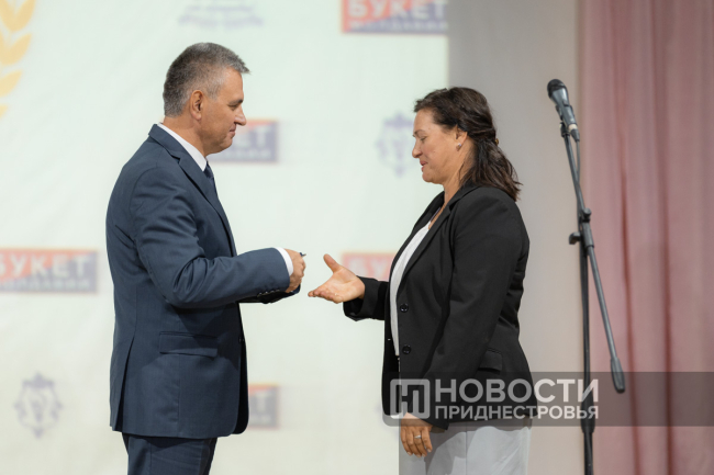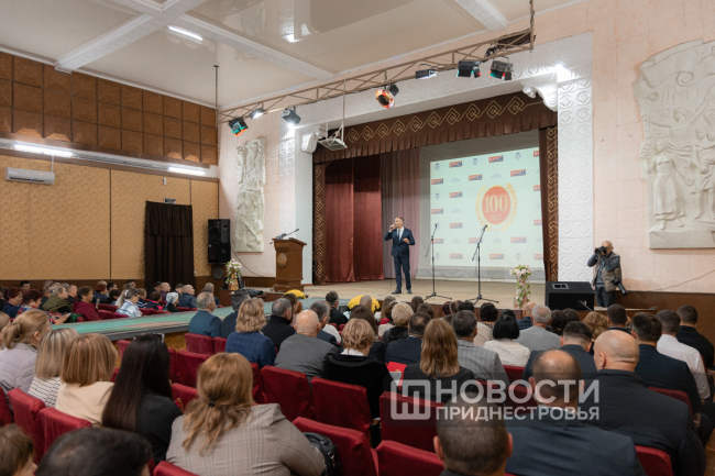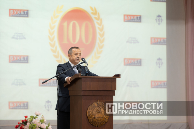 11 Oct, 2024, 16:03There was a holiday in Dubossary today. The enterprise, whose history is exactly one hundred years old, was honored. A ceremonial meeting on the occasion of the centenary of the "Bouquet of Moldova" plant was held in the Palace of Children's and Youthful Creativity. The PMR President Vadim Krasnoselsky arrived to congratulate the team. The President awarded "Bouquet of Moldova" the Order of Merit, 1st degree. The collective award was accepted from the hands of the President by the general director of the closed joint-stock company Tatyana Garkavaya.