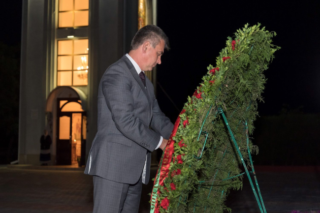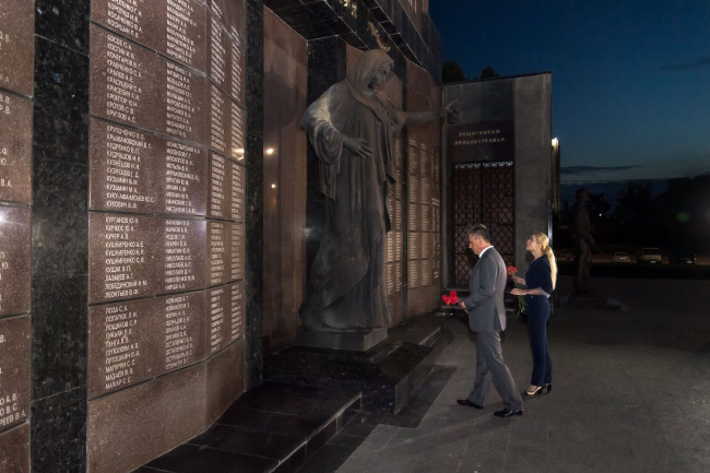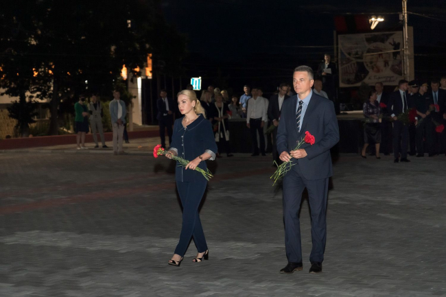 The President of the Pridnestrovian Moldavian Republic Vadim Krasnoselsky, at the end of the flower-laying ceremony, noted that every carnation left by him on behalf of all the Pridnestrovians at the Eternal Flame, at the foot of the monuments and stone slabs on which the names of the heroes are carved, symbolized the gratitude of the descendants.