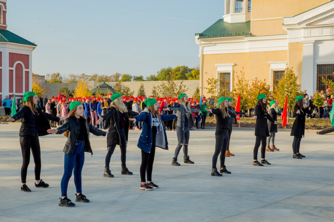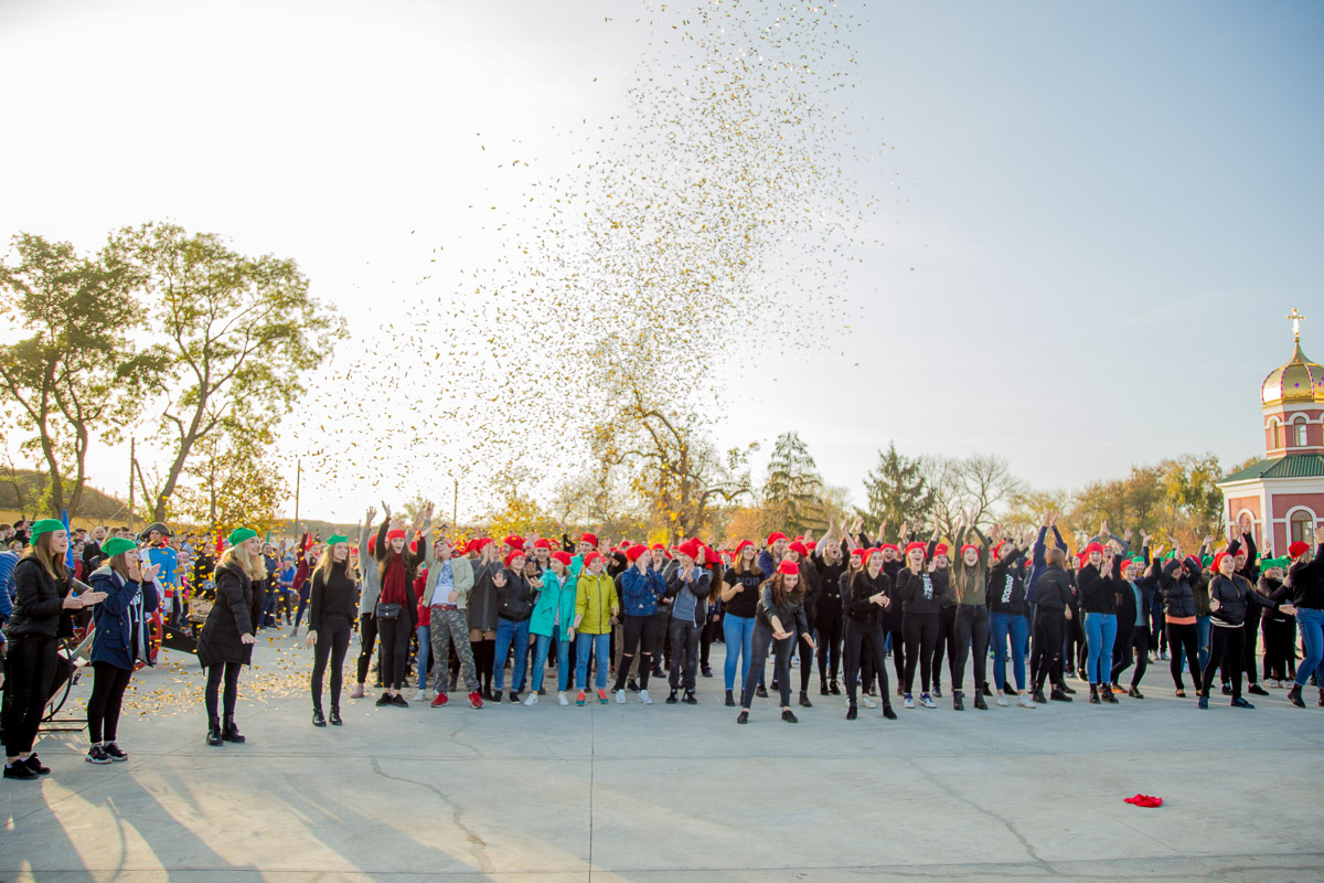 More than 800 boys and girls took part in a flash mob. To the song “Pridnestrovie is a wonderful land” the participants formed a symbolic house, the roof of which was made up by the people of Pridnestrovie. Then they built the words "We are united".