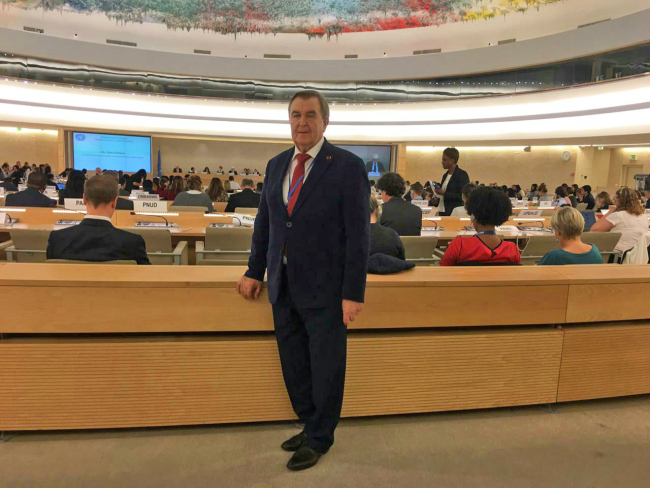 Tiraspol, September, 23. /Novosti Pridnestrovya/. The head of the PMR Official Representation in Russia Leonid Manakov, as delegation part of the Russian Compatriots International Council, took part in the 42nd United Nations Human Rights Council session in Geneva.