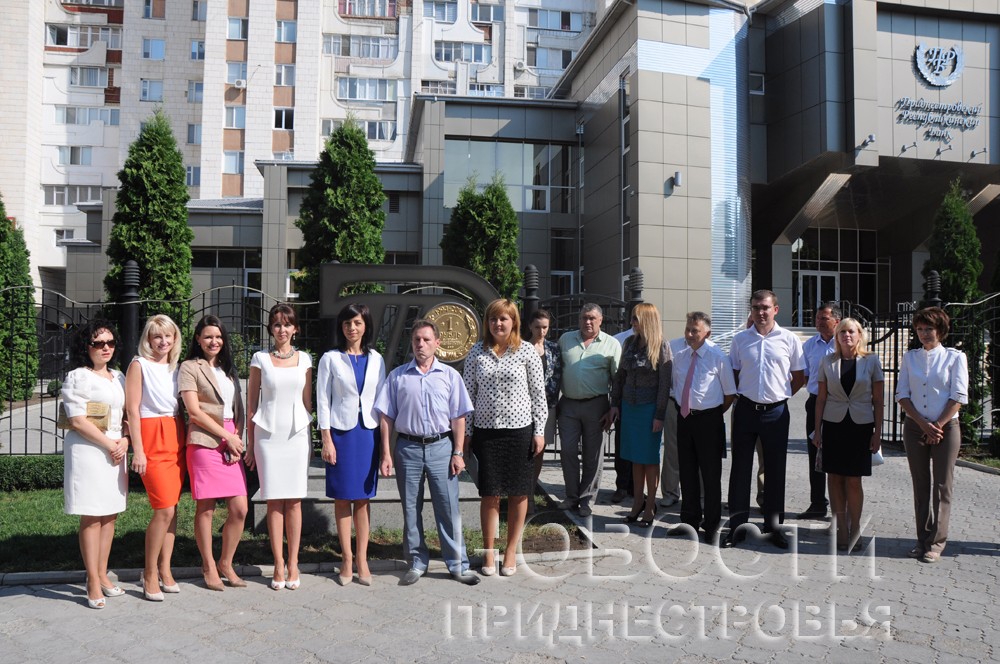 Today, an opening ceremony of the sculptural composition "Pridnestrovian Ruble" has taken place in front of the Republican Bank of Pridnestrovie (RBP). The event was attended by the head of the RPB, Edward Kosovsky, the chairman of the Government, Tatyana Turanskaya, the head of the Presidential Administration, Nadezhda Baranova, the head of Tiraspol, Andrey Bezbabchenko.