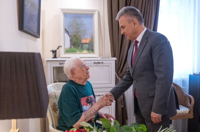14 Jul, 2025, 12:07Veteran of the Great Patriotic War Vladimir Ivanovich Gromov celebrated his birthday today. The birthday person turned 99 years old. He was personally congratulated by the PMR President Vadim Krasnoselsky and the head of the capital's administration Ilona Tyuryaeva on the occasion of the hundredth year of life.