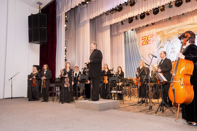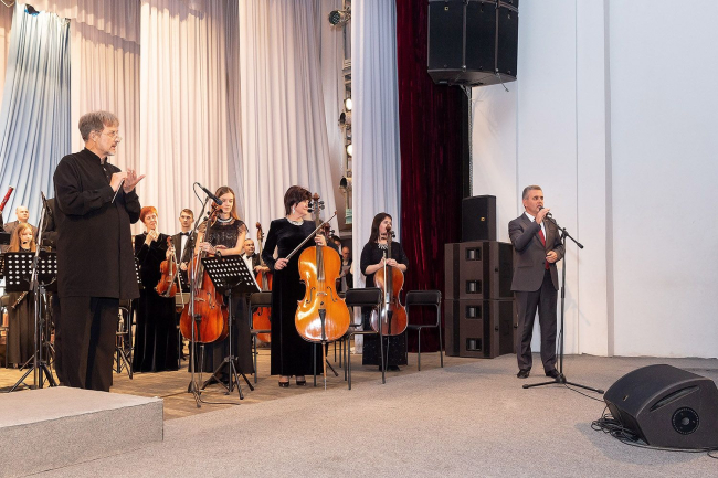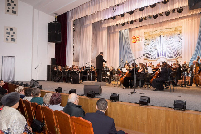 Today's evening is not only musical, but also solemn. The staff of the State Symphony Orchestra accepted congratulations on the occasion of the quarter-century anniversary. The PMR President Vadim Krasnoselsky addressed the musicians with words of gratitude for talent and work. Vadim Krasnoselsky expressed gratitude the First PMR President Igor Smirnov for the fateful decision to create the State Symphony Orchestra, the audience applauded.