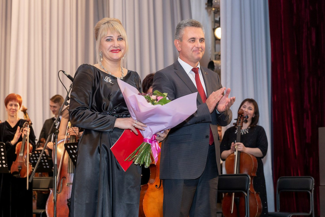 The PMR President with his wife attended the anniversary concert of the State Symphony Orchestra of the Pridnestrovian Moldavian Republic