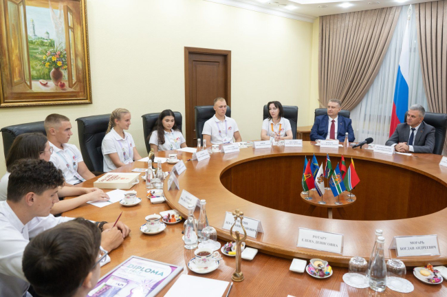 22 Jul, 2025, 15:18A meeting of the President with young participants of three international creative and cultural-educational projects, their mentors and officials supervising the relevant areas was held in the negotiation hall of the Administration of the PMR President.