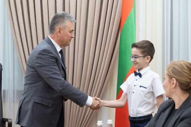 The conversation took place in the format of a tea party. They discussed not only recent achievements and impressions associated with them, but also plans, prospects, and aspects that concern the children. They talked about history and the importance of preserving it. For example, the President was told about a teacher of the Moldavian language and literature from the village of Korotnoye – the keeper of the local museum of military and labor glory. They asked to pay attention to her merits. Vadim Krasnoselsky in turn encouraged the children to continue the work started by the teacher. Exchanging impressions from visiting museums in different cities and countries, they also discussed the creation of the Pridnestrovian State Museum. They touched on the topic of cinematography. Creative youth are interested in the prospects for the development of this area. They asked whether a film adaptation of the book "The Fate of a Tanker" is planned. They exchanged ideas regarding historical events, real personalities and fictional characters worthy of the attention of filmmakers. Vadim Krasnoselsky recommended paying attention to the Fortress of Bendery. It is not only a treasure trove of historical facts and legends, but also a ready-made film set that does not require artificial scenery.