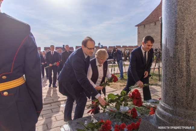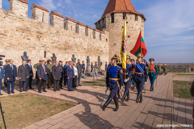 The PMR President Vadim Krasnoselsky, the initiator of the creation of the Pantheon of Military Glory, as well as, the revival of the Bendery fortress and its development as a historical, educational, leisure and tourist center in general, took part in the solemn ceremony of unveiling the monument to Mikhail Vorontsov. Vadim Krasnoselsky with his wife arrived at the event. The First President of the PMR, Russian guests, heads of state and local authorities were among invited. Pupils of the Tiraspol Suvorov Military College and the Republican Cadet Corps, cadets of the Institute of Law of the Ministry of Internal Affairs and the Military Institute, as well as servicemen of the Guard of Honor of the PMR Ministry of Defense took part in the ceremony.