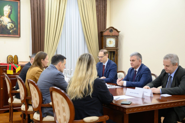 10 Nov, 2025, 13:29The PMR President Vadim Krasnoselsky met with a delegation from the US Embassy, led by Chargé d'Affaires Nick Pietrowicz. The delegation included Kim Zapfel, Chief of the Political and Economic Section of the US Embassy in the Republic of Moldova, and Kelsey Edwards, Political Counselor at the US Embassy in the Republic of Moldova. Foreign Minister Vitaly Ignatiev participated in the dialogue on the Pridnestrovian side.