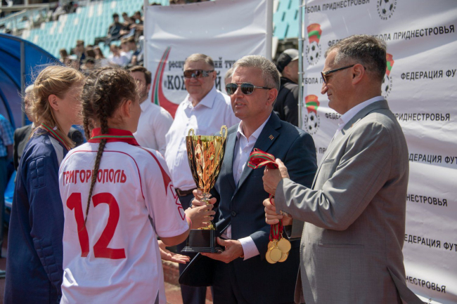 Vadim Krasnoselsky, addressing the participants, winners and organizers of the tournament, congratulated everyone on the holiday of sports – this is how the PMR President called today's event. Speaking about football, the President noted that it is one of the most beloved, affordable, democratic mass sports. The President emphasized that there were no losers among the participants of the Leather Ball tournament, there were holders of various places in the tournament bracket, each of which was a winner just because they took part in the competition, gained new experience and friends. Vadim Krasnoselsky recalled that the next tournament will start in the fall, wished the young athletes further success, expressed gratitude to everyone who was involved in organizing a large-scale nationwide tournament.