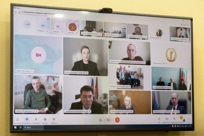 The Chairman of the Government of the Pridnestrovian Moldavian Republic Alexander Rosenberg and the Prosecutor of the Pridnestrovian Moldavian Republic Anatoly Guretsky spoke about the work of the courts with conclusions and recommendations. A proposal was made to move to a system of automated distribution of cases among judges among other things. The initiative requires further discussion. They talked about the need to improve the mechanism for compensation for moral damage.