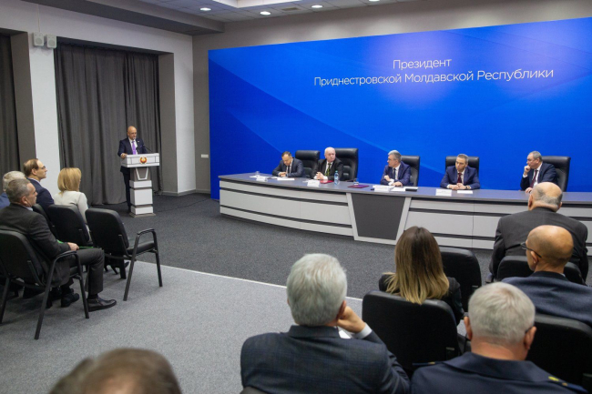06 Dec, 2024, 15:13Vadim Krasnoselsky gathered members of the Security Council of the Pridnestrovian Moldavian Republic for a meeting. The main issue is providing the country with energy resources. Opening the working discussion, the President noted that negative trends have been observed for several years. External factors – the military actions in Ukraine and instability in Moldova have an adverse effect on the situation in Pridnestrovie, hindering the full and dynamic development of the country's economy. Moreover, risks associated with ensuring the life of the republic are artificially created. Pridnestrovie has previously faced challenges based on limited gas supplies, and coped with it. It is necessary to overcome any kind of difficulties on a national scale to consolidate efforts, timely develop solutions, and carry out preparatory measures designed to minimize negative consequences, Vadim Krasnoselsky recalled. He emphasized that the preliminary work was carried out without unnecessary noise and hype, unlike neighboring Moldova, where the gas issue is publicly speculated on. “I would like to remind all of you, all citizens of the Pridnestrovian Moldavian Republic, that in my interview I once said that when things get difficult, I will definitely say so. It is not in my rules to disturb people before it is necessary, to speculate, to create some kind of information platforms to disturb people. Today there is no 100% guarantee – either for gas supply or for its absence. However, we must prepare for any development of events. We will specifically analyze the actions of each manager, each employee, each organization in the conditions of gas supply, partial gas supply and its complete absence at the Security Council meeting today. I repeat once again: it is impossible to say what the scenario will be, but we must prepare. Everyone must know their place in the ranks so that there is no panic, there is complete organization. A lot depends on this: the fulfillment of tasks, provision of people, and most importantly, people's lives", the President said.