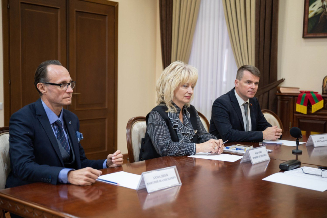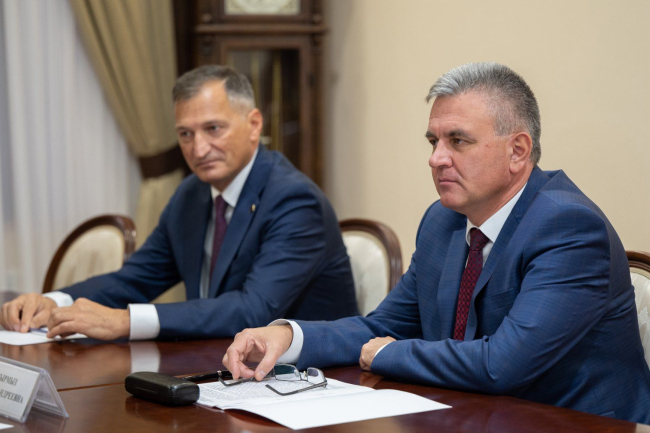 The PMR President Vadim Krasnoselsky received the leadership of the Pridnestrovian State Theater named after Nadezhda Aronetskaya – director Denis Apter and chief director Dmitry Akhmadiev. The meeting was attended by Advisor to the PMR President Pavel Prokudin and Head of the State Service for Culture and Historical Heritage of the Pridnestrovian Moldavian Republic Maria Kyrmyz.