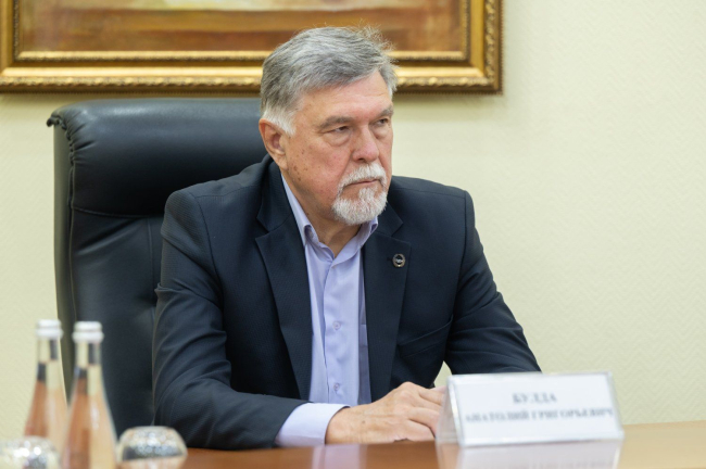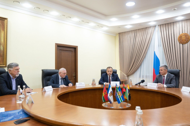 Vadim Krasnoselsky held a meeting with members of the Presidium of "The Union of Defenders of Pridnestrovie" public organization of the republican on the eve of a significant date for the Pridnestrovian people – the 33rd anniversary of the tragedy in Bendery. Valery Shirkov, Anatoly Bulda and Sergey Garbuznyak were invited to the conversation. The Head of the Administration of the PMR President Sergey Belous, the PMR Government Chairman Alexander Rozenberg and the PMR Supreme Council Chairman Alexander Korshunov also took part in the conversation.