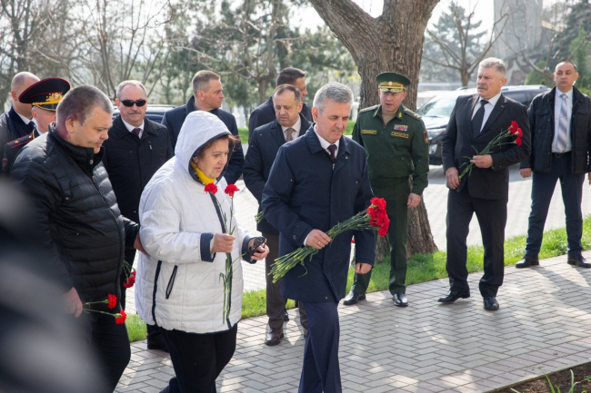 01 Апр., 2025, 11:55The top officials of the state and Bendery law enforcement officers have been visiting Tkachenko Street in Bendery on April 1 since 2018. The house where Vasily Kalko lived is located here. He was the defender of the republic, the first head of the Bendery Department of Internal Affairs and the Commissioner for Human Rights in Pridnestrovie. His life ended on September 11, 2017. A memorial plaque was installed on the house. Vadim Krasnoselsky lays flowers at it every year, paying tribute to the memory of Vasily Kalko, whom he highly valued and knew personally.