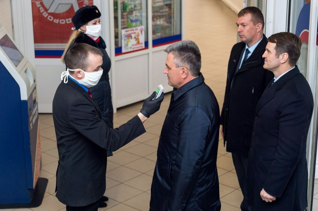 23 Mar, 2020, 18:01The PMR President Vadim Krasnoselsky and the Head of the Operational Headquarters for the Prevention of the Spread of the Coronavirus Ruslan Mova visited with an unscheduled inspection an object of a large distribution network located in Tiraspol. Entering the store, the President went through the process of determining the temperature and disinfection of the hands. Vadim Krasnoselsky talked with customers and the store administration. Citizens noted that they understand quarantine precautions and support decisions of the country's leadership on forced restrictions.