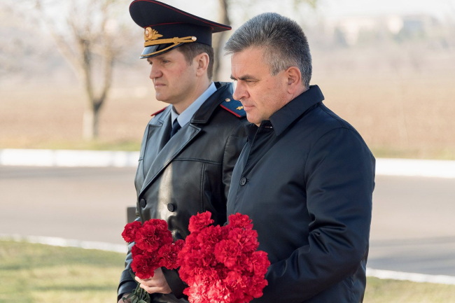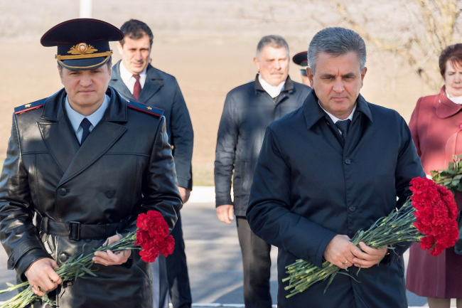 The President laid flowers at the memorial stone with carved names of the PMR defenders who died on April 1, 1992