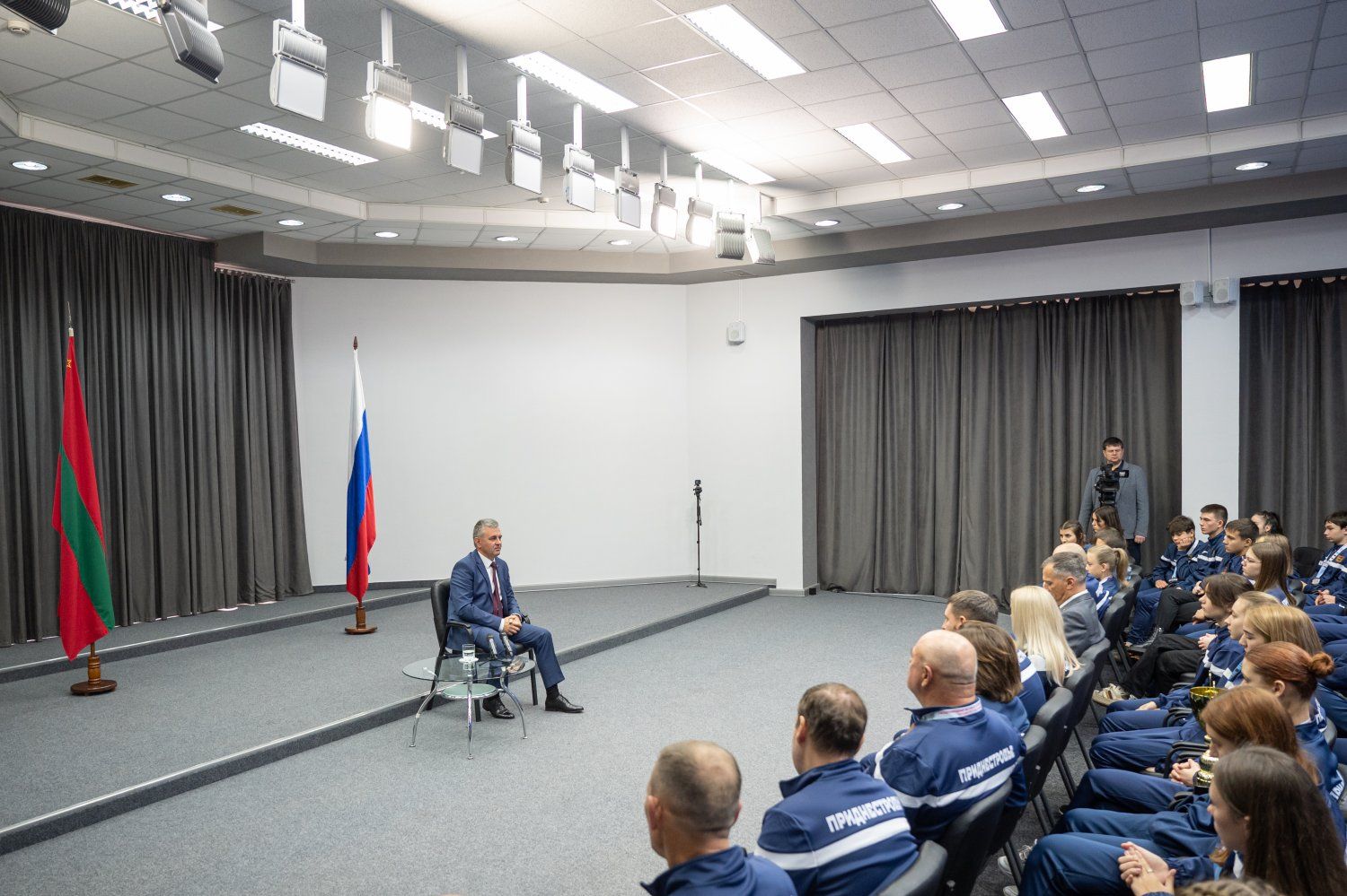 The sportsmen, coaches and trip organizers were received by the PMR President Vadim Krasnoselsky today. The meeting took place at the conference hall of the presidential executive office.