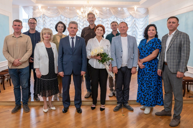 17 Sep, 2025, 12:39Tatyana Tverdokhleb, artistic director and principal choirmaster of the Pridnestrovian State Choir, is celebrating a personal anniversary. The birthday person is a true professional. She has been a certified choir conductor and teacher of choral disciplines since 1979. She directed the Rubinstein Pridnestrovian Higher Music College From 2005 to 2013. Tatyana Tverdokhleb has led the country's leading choir for two decades. She is an associate professor. She holds the titles of "Excellent Cultural Worker," "Honored Artist of the PMR," and "People's Artist of the PMR". Tatyana Tverdokhleb has been awarded the Order of Labor Glory. She was awarded the Order of Catherine the Great today. The award was presented by the PMR President Vadim Krasnoselsky, who arrived at the Palace of the Republic for the ceremonial mission.