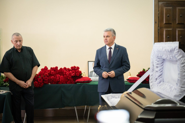 11 Sep, 2025, 13:55A mourning ceremony for the rector of the Pridnestrovian State University Vladislav Sokolov was held at the Cultural and Educational Center of the Pridnestrovian State University. The PMR President Vadim Krasnoselsky arrived to see him off on his final journey. The President expressed his condolences to everyone who knew Vladislav Sokolov and addressed words of support to his loved ones. The President said that he had many years of cooperation with the deceased and highlighted such qualities of Vladislav Sokolov as calmness, decency and sincere kindness. Vadim Krasnoselsky did not ignore the courage and fortitude of Vladislav Sokolov which he demonstrated among other things in the fight against illness. The President said that Vladislav Vladimirovich was involved in the university management until the very end, passed away, but did not leave the university.