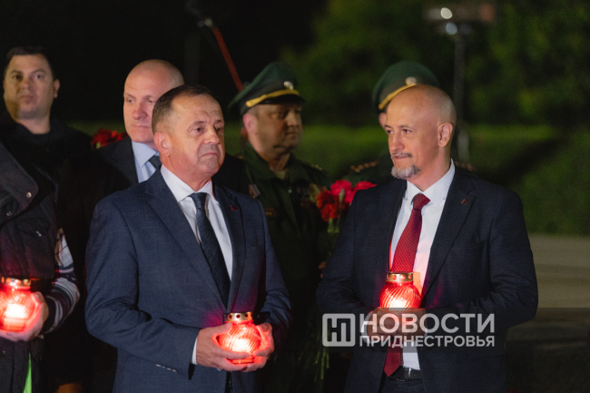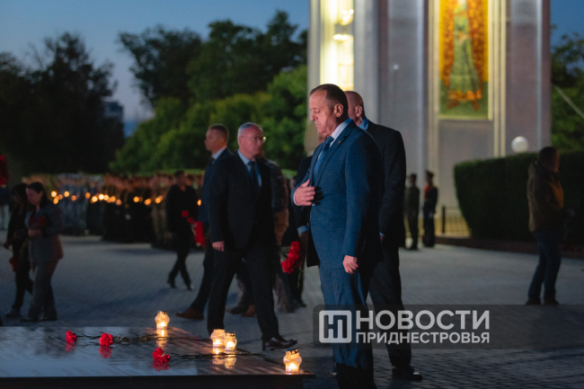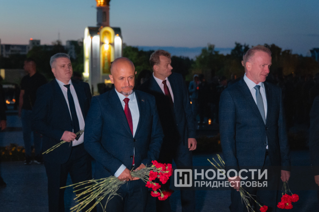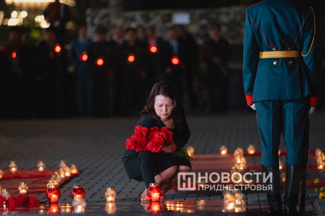 Tiraspol, June 22. /Novosti Pridnestrovya/. In Tiraspol, the international action Candle of Memory began at exactly 4 am. For many years, light candles have been lit at the Glory Memorial in memory of the attack of Nazi troops on the Soviet Union. The event is attended by the leadership of the republic and the city, representatives of public organizations, cadets, pupils of Suvorov Military College, young army members, and Tiraspol residents.