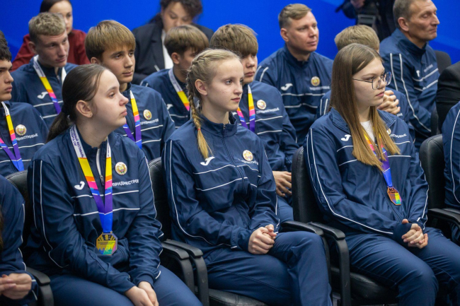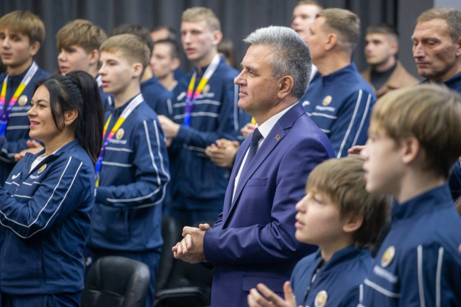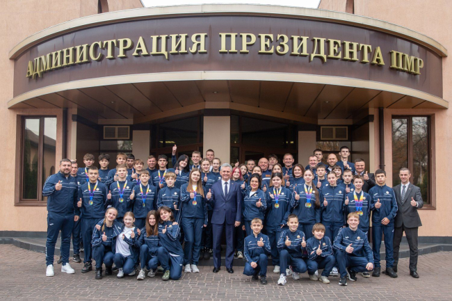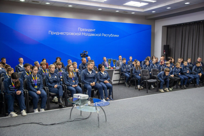 Welcoming the guests, the President congratulated the team, which brought six medals, on their successful demonstration and thanked them for the worthy representation of the Pridnestrovian Moldavian Republic, emphasizing that he personally and the whole country were proud of the young people.