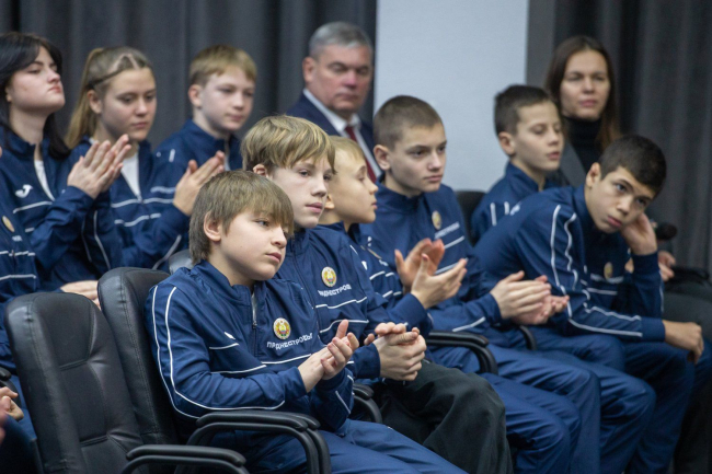 05 Dec, 2024, 15:15They talked about sports today at the presidential executive office and also sang about sports. The President was visited by the Pridnestrovian team, which had recently returned from Moscow – a participant in the XI International School Sports Festival and the author and performer of the anthem of our team Evgeny Avramov. More than fifty people gathered in the conference hall: the team in full force – athletes, coaches, accompanying persons, as well as officials who were involved in organizing the trip. The initiator of the meeting was Vadim Krasnoselsky.