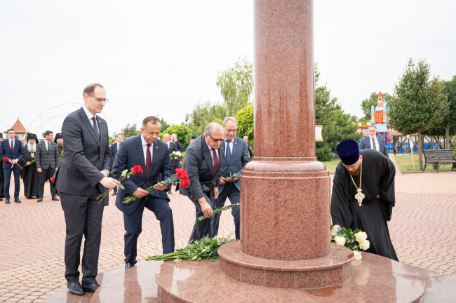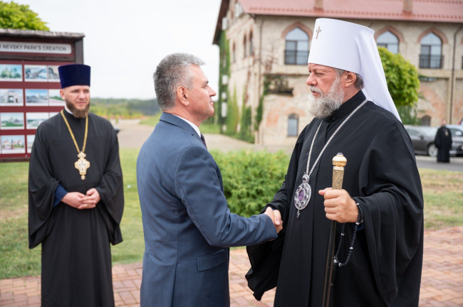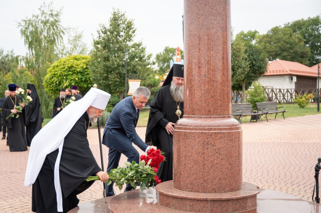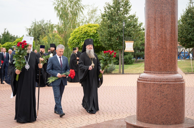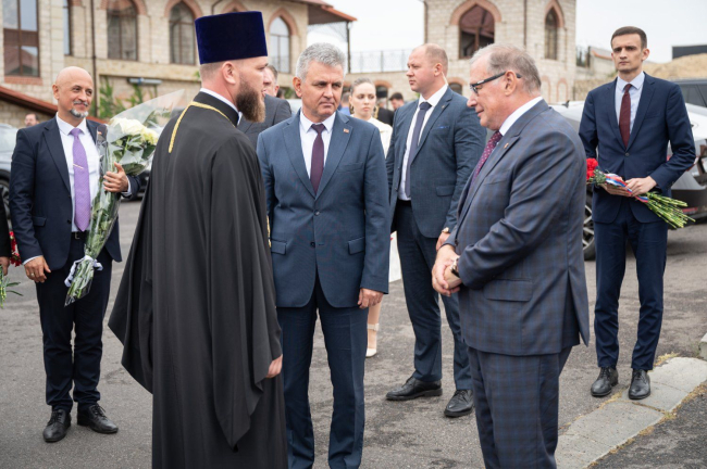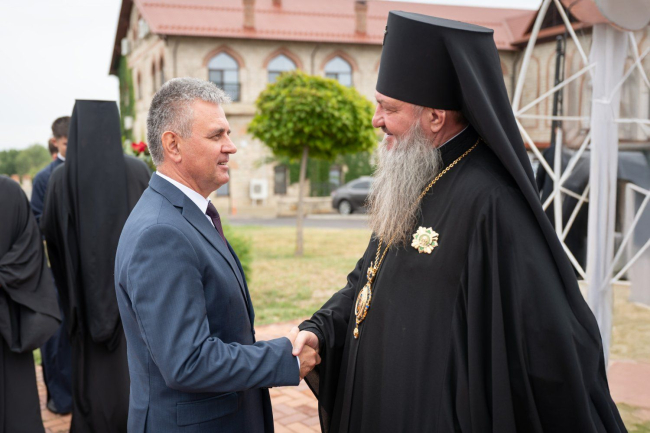 After the flower-laying ceremony, The PMR President congratulated Archbishop Sawa on the 30th anniversary of his episcopal ordination. A significant event in the life of the priest took place on September 12, 1995 – the day of the celebration of the transfer of the relics of the holy blessed prince Alexander Nevsky.