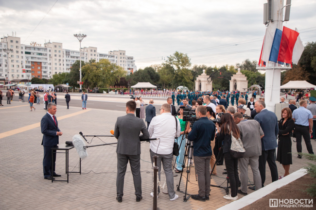 The PMR President Vadim Krasnoselsky talked to journalists on the day when Pridnestrovie celebrates the main state holiday. The President noted in a conversation with representatives of the mass media: “The Republic is 32. I don't remember easy times. I said at a solemn meeting yesterday that after all, the most difficult time was the end of the 80s and the beginning of the 90s. These years were associated with the collapse of our united Motherland, the Soviet Union. The emergence of Pridnestrovie took place in a very difficult situation, difficult circumstances. We survived all this, built a state that lives for 32 years. Times are also not the easiest today of course: the pandemic, geopolitical catastrophe around us, which has one effect or another. However, we are talking about the peace"