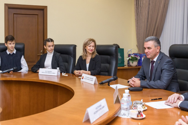 12 dancers aged from 10 to 17 years, in the course of the meeting with the PMR President, organized at the presidential executive office, felt in a relaxed manner - they were used to be in the spotlight. They spoke with Vadim Krasnoselsky not only about their own sporting achievements and plans, they were interested in the President’s childhood, his hobbies, everyday life, asked how to lead the republic, and whether there is time for the family in the tight presidential schedule.