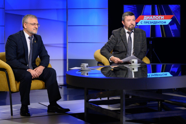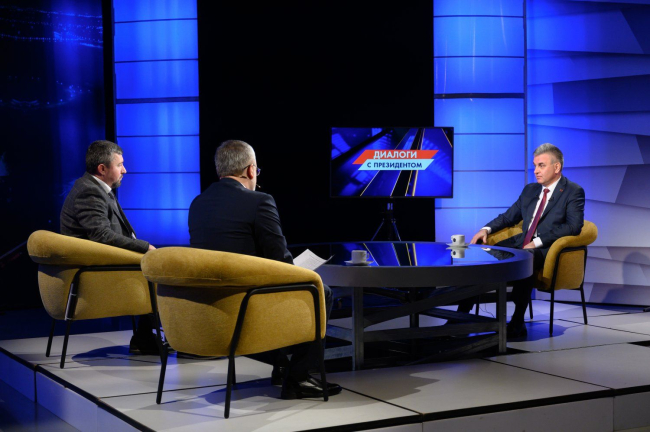 23 Dec, 2025, 11:53The President's dialogue with television editors took place in a studio. Vadim Krasnoselsky's interlocutors were Dmitry Matveyev and Igor Avrenev. The conversation lasted over an hour. They discussed domestic and foreign policy, peace and security, the state's achievements, objectives, and prospects, the Pridnestrovian people, emotions, musical preferences, and family traditions. Watch the full interview this evening on the First Pridnestrovian Television Channel and TSV, listen on Radio-1, and read it on the News of Pridnestrovie news agency and in the Pridnestrovie newspaper. All materials will be available on the official website of the PMR President.