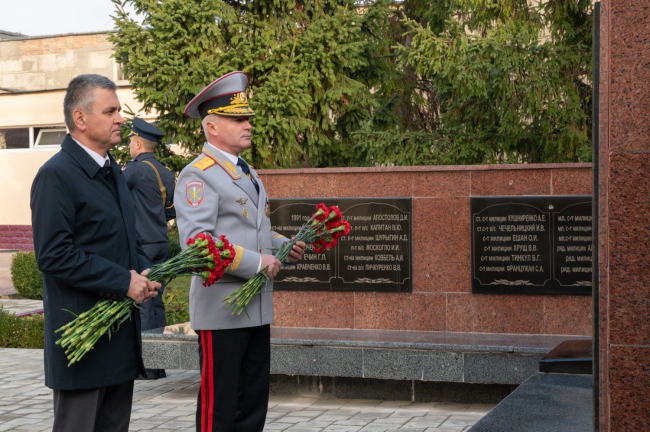 10 Nov, 2022, 10:33Triple professional holiday today for Pridnestrovian law enforcement officers: Militia Day, the 105th anniversary of the formation of the Soviet militia and the 31st anniversary of the creation of the Pridnestrovian militia. The President of the PMR congratulated the employees of the internal affairs bodies. Vadim Krasnoselsky arrived at the territory of the Ministry of Internal Affairs of the Pridnestrovian Moldavian Republic, where the personnel gathered on the solemn occasion. The festive events were preceded by the traditional flower-laying ceremony at the monument to employees of the internal affairs bodies of Pridnestrovie who died in the line of duty. More than four dozen militiamen gave their lives in the service for the Pridnestrovian history. 16 law enforcement officers died defending the freedom and independence of the Pridnestrovian state. Their memory was honored with a minute of silence during the solemn meeting that was held in the assembly hall of the Ministry of Internal Affairs. The history of the formation and development of law enforcement structures was recalled during the official part of the event. The countdown has been going on since 1917, when the people's militia initially and then the workers' militia appeared instead of the tsarist police. The corresponding decree was signed on 10 November.