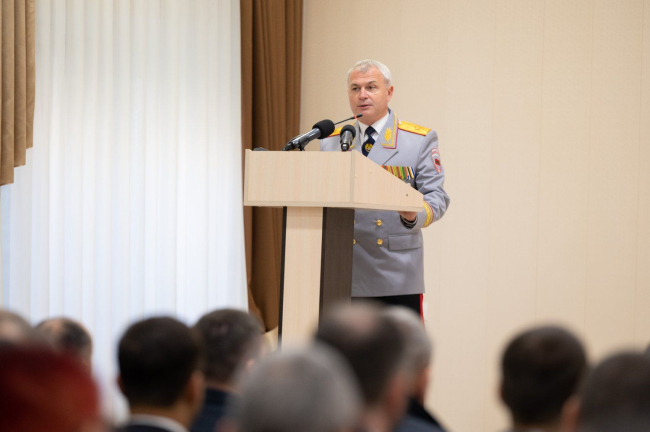 They talked about today's militia, emphasizing that society's trust in law enforcement agencies is growing. The PMR President emphasized the significance and specifics of the activities of employees of the internal affairs bodies. Vadim Krasnoselsky knows about it firsthand: he served in law enforcement structures for almost two decades, five of which as the Minister of Internal Affairs of the Pridnestrovian Moldavian Republic from 2007 to 2012. Vadim Krasnoselsky recalled the times of service in the Bendery militia department, spoke about the continuity of generations of militiamen, expressed gratitude to veterans of law enforcement agencies. The President emphasized that there is no country on the world map that does not have a system of public security and law and order. The President focused on the peculiarities of service by Pridnestrovian militiamen in modern realities, emphasizing that the Ministry of Internal Affairs of the Pridnestrovian Moldavian Republic is doing an excellent job with the tasks assigned to the militia.