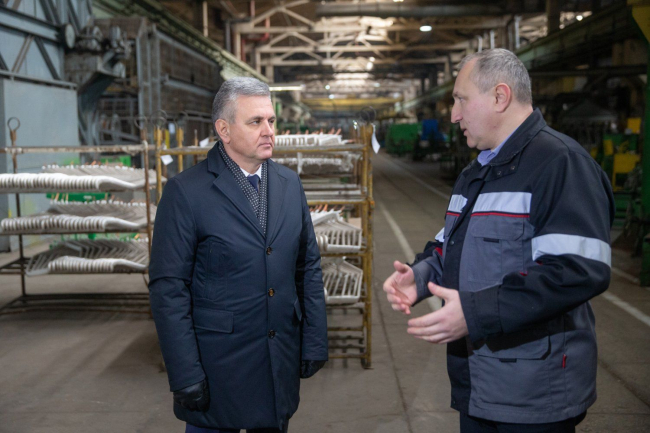 23 Jan, 2025, 12:30The Elektromash plant in Tiraspol was one of the first to switch to night work under the state of emergency declared due to the energy crisis. The company's products are always in demand both in the republic and abroad. The plant responds to the situation and updates the range based on current needs at the same time. They are producing solid fuel boilers among other things. This is the President's instruction. Vadim Krasnoselsky visited the enterprise, talked with the management and staff today. The meeting was attended by the Chairman of the PMR Government Alexander Rosenberg, the Minister of Economic Development Sergey Obolonik, the head of the Ministry of Internal Affairs of the PMR Vitaly Neagu.