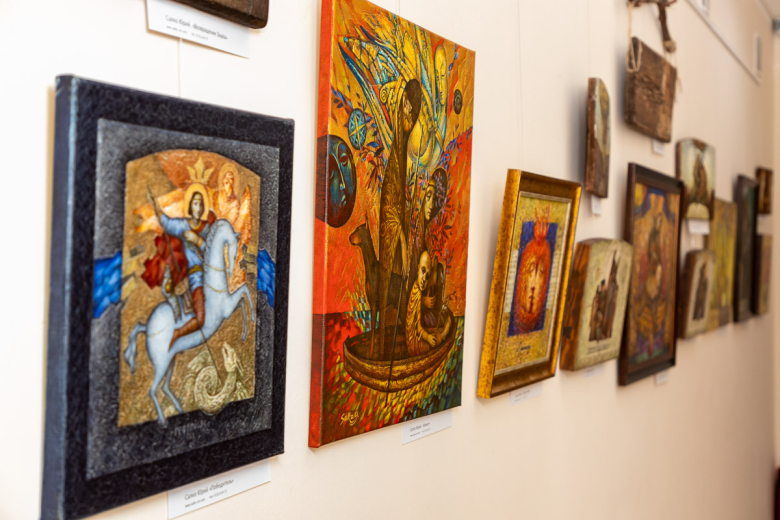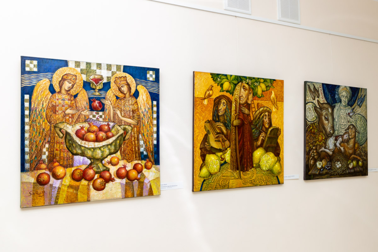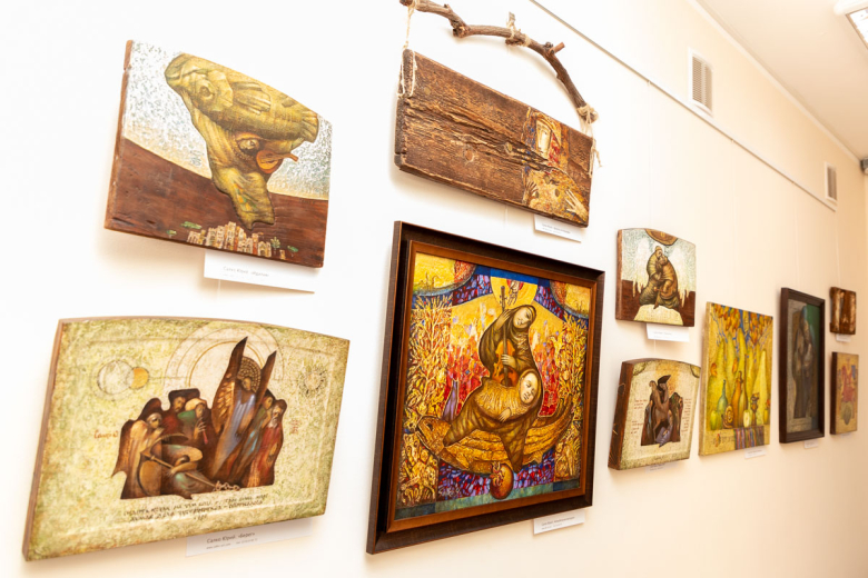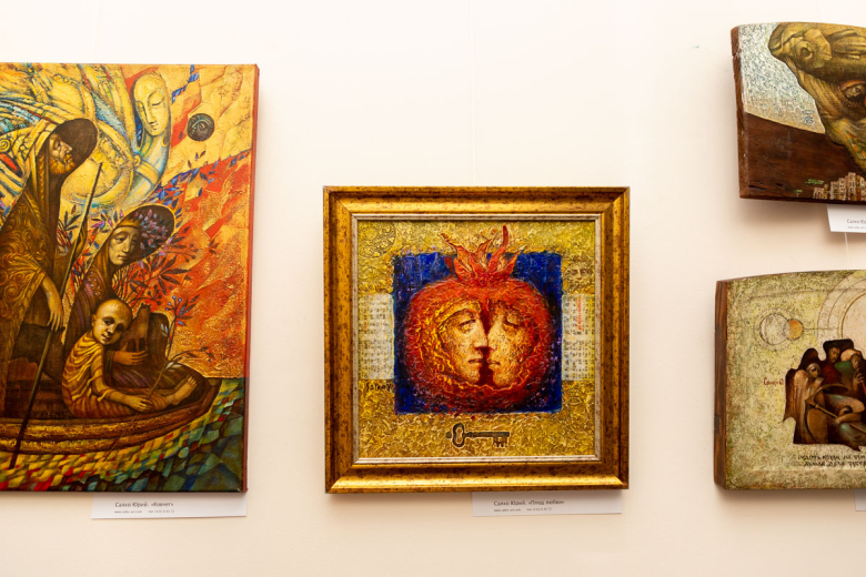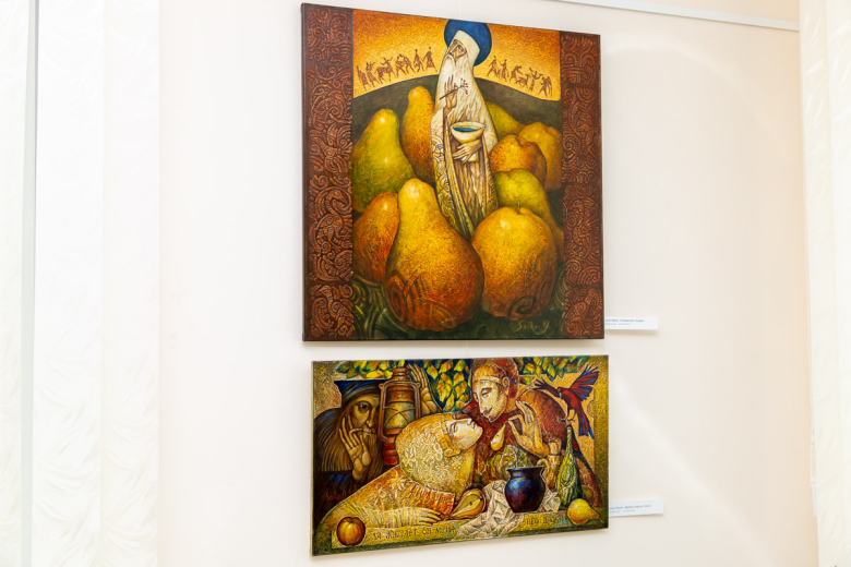 Small bright room. Against the white walls the artist's works seem even more colorful. Behind a peculiar technique is not only the meaning based on the plots of the “eternal books”, but also the author’s soul itself, his thoughts, his insides. After all, as the artist himself says, “when the daily bustle and voices of people cease, everything is filled with some kind of quiet unearthly glow, you begin to feel differently”.