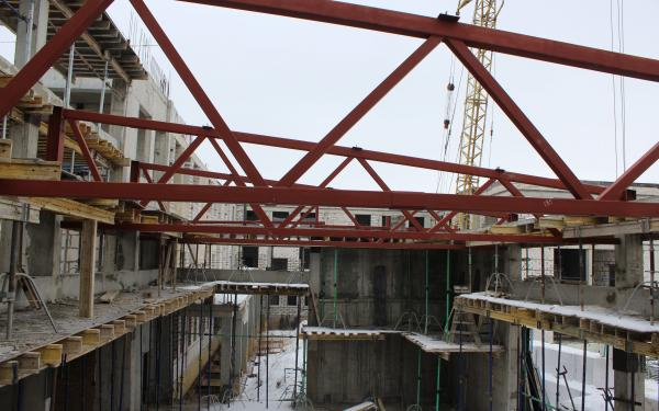 Currently, the workers have started to install windows and mount the structural steelwork of the gym's roof and are continuing the laying of external elements of the walls and internal partitions.