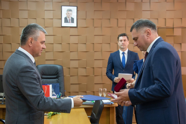 24 Jul, 2022, 11:57The Head of the State Administration of Rybnitsa and the Rybnitsa region Viktor Tyagay celebrates his 50th anniversary today. The President congratulated the birthday person. The hero of the day was awarded the Order of Labor Glory for many years of conscientious work, high organizational and professional abilities. Vadim Krasnoselsky presented it personally. The award ceremony took place at the site of the Grigoriopol State Administration. The choice of place was justified by the fact that the PMR President and the birthday person were in Grigoriopol – they were invited to the celebration of the City Day. The congratulations were joined by colleagues of Viktor Tyagai – the heads of cities and regions of the republic.