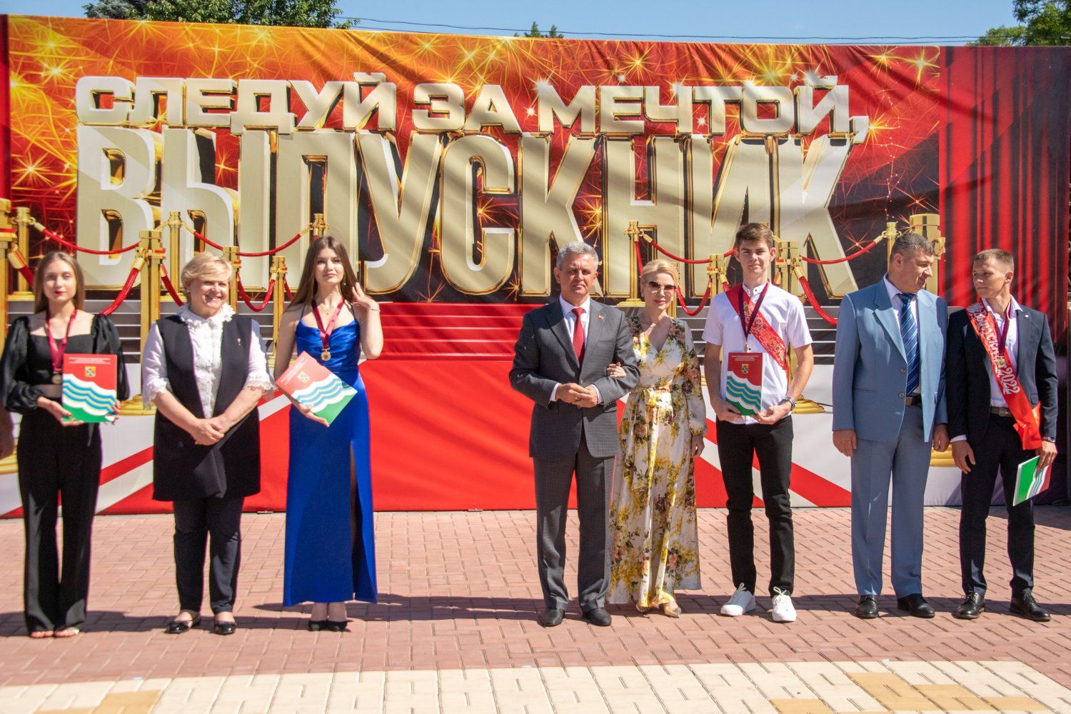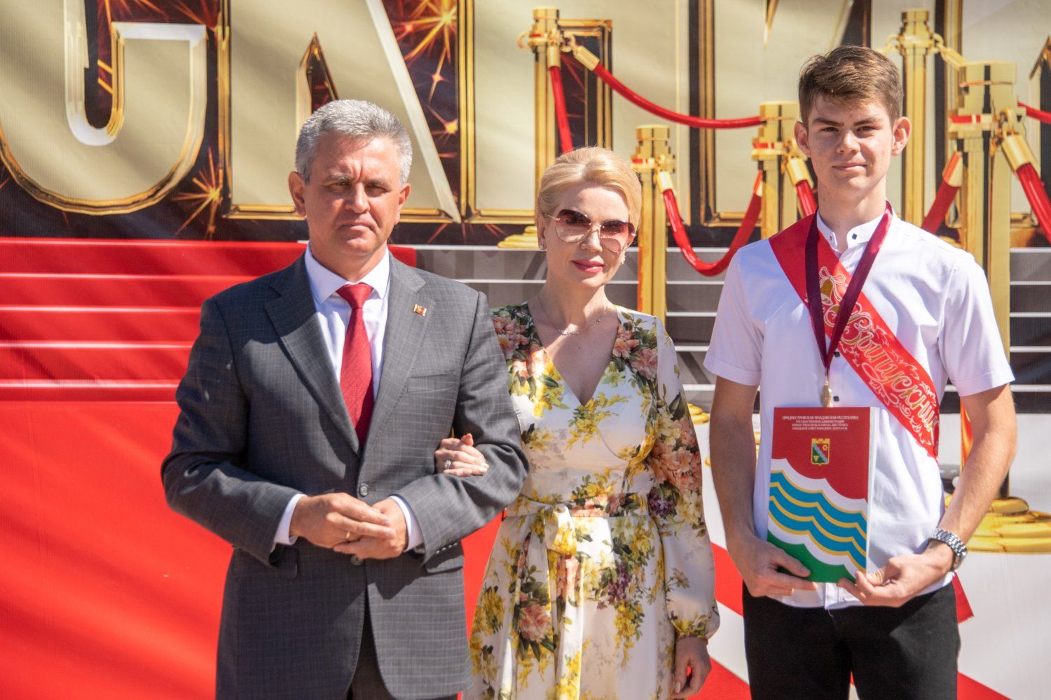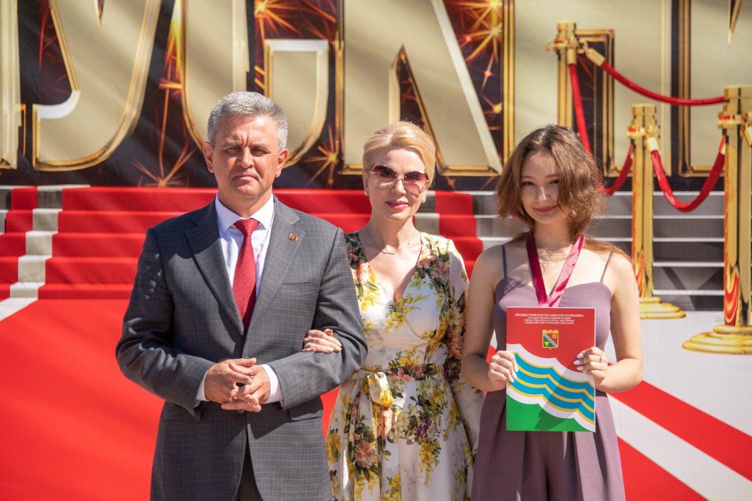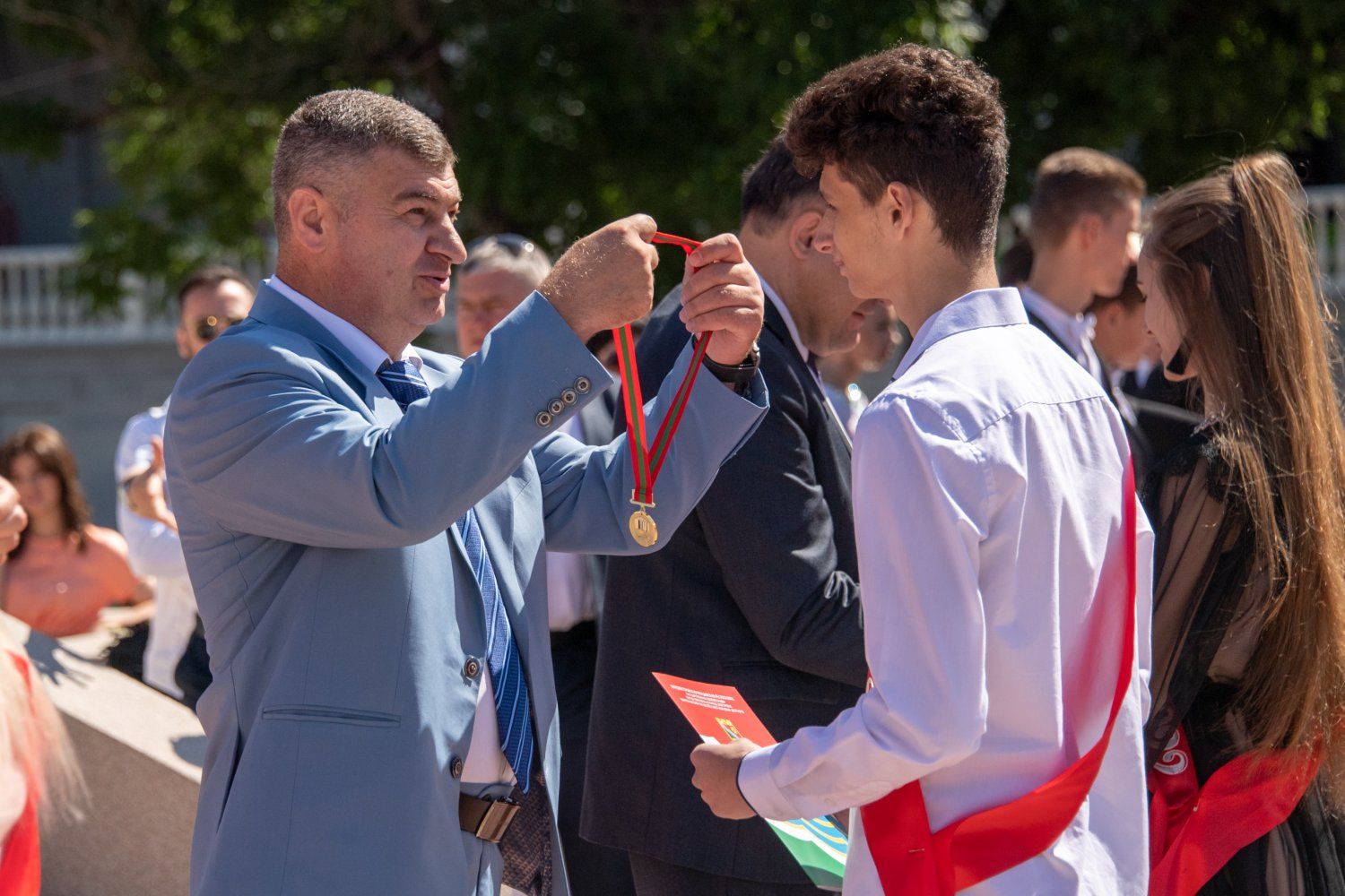 15 Jun, 2022, 13:14“Follow your dream” – this is the motto of honoring the best graduates of general education organizations in Tiraspol today. The event, the solemn ceremony of awarding gold and silver medals was organized in the center of the capital near the city fountain. Svetlana and Vadim Krasnoselsky arrived to congratulate the graduates who completed the 11-year educational path with the best results.