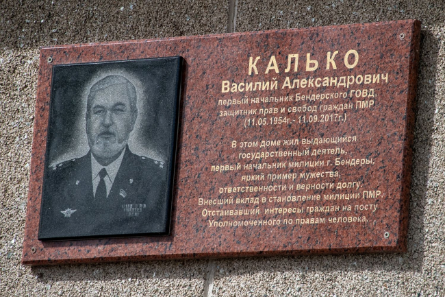 Vasily Kalko passed away on September 11, 2017. The personalized memorial plaque was opened on April 1, 2018, on the 26th anniversary of the Moldovan aggression against peaceful Bendery residents. The leadership of the city and the republic, veterans and militia officers bring flowers this day every year here in memory of the patriot.