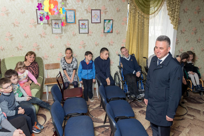 Socially important institutions, already being built and still awaiting infrastructure renovation, expansion or re-equipment are targeted for current inspection of the President. Among them is the Center for Social and Psychological Rehabilitation of Children with special needs. This municipal institution has been operating for 13 years. Today, more than three dozen pupils who have been diagnosed with autism, cerebral palsy, Down syndrome, epilepsy, and mental retardation attend it. A defectologist, a speech therapist, a psychologist, a methodologist of physiotherapy exercises and other employees of the institution seek to socialize the persons under care of the center as much as possible. There is cynological section, theater group.