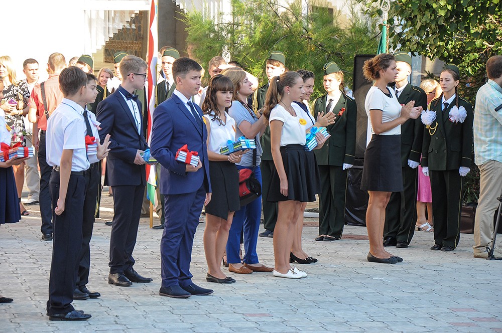 «This is a special lineup because we are receiving the most honourable guests and because it is taking place on the 70th anniversary of the Victory and on the eve of Pridenstrovie's 25th anniversary. I want to express gratitude for the new textbooks we have been presented with. I believe we will justify your confidence since our gymnasium has always shown high rates of education quality and has always been among leaders in this respect," said the director of Tiraspol's humanities and maths gymnasium, Valentina Zemlyakova.