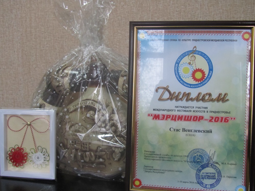 По традиции фестиваля искусств председатель оргкомитета «Мэрцишора» — начальник Госслужбы по культуре Мария Кырмыз вручила ансамблю «Концертино» и Стасу Венглевскому сувениры, дипломы участников и поблагодарила их за яркое выступление.