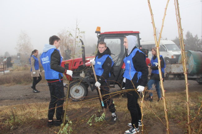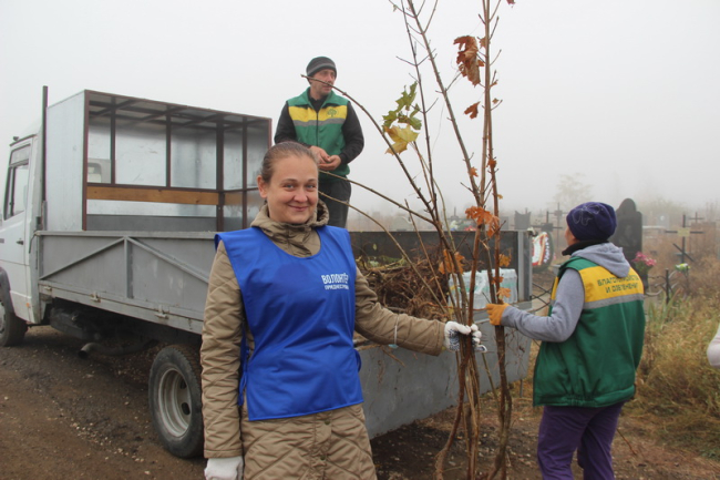 Волонтёры высадили более ста саженцев клёна, акации, дуба и рябины