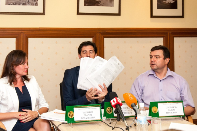 Зампред ПРБ показал журналистам стопку обращений от граждан и юрлиц с просьбами продать валюту.