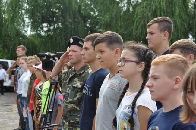 Открытие военно-спортивных сборов среди казачат началось с построения команд и поднятия флагов Приднестровской Молдавской Республики и Черноморского казачьего войска.