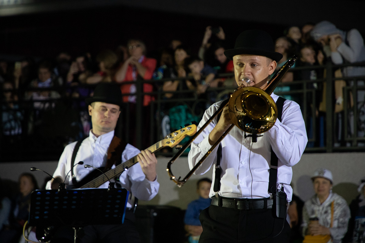 Сегодня «Либерти» подготовили для зрителей программу шоу-дефиле. Это стало возможным благодаря использованию инструментальных радиомикрофонов. По словам руководителя квинтета Дмитрия Шеремета, этот комплект техники они получили в подарок от главы государства Вадима Красносельского и впервые сегодня использовали инструментальные радиомикрофоны на публике.