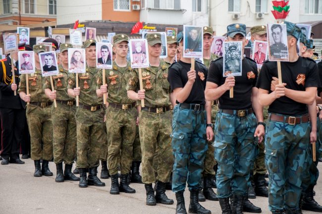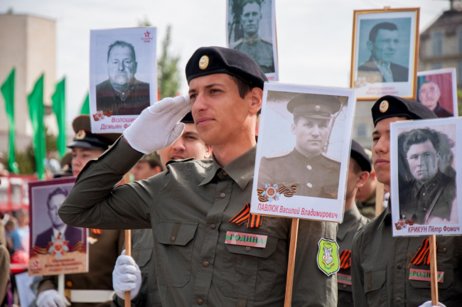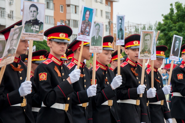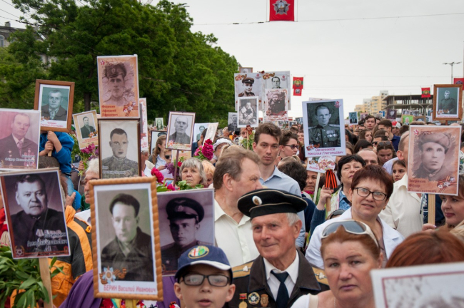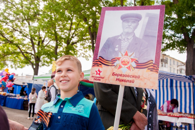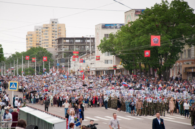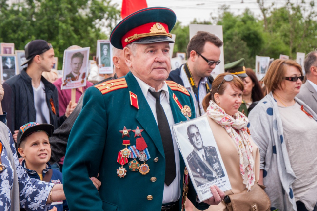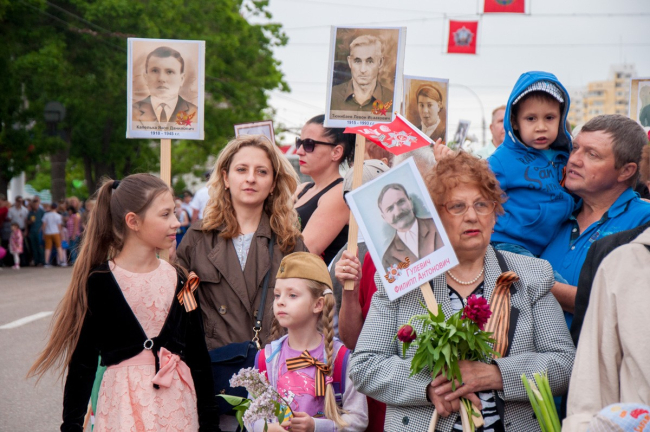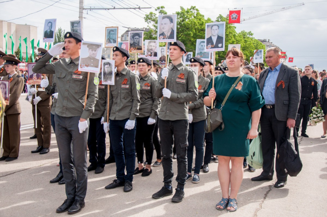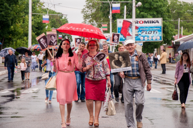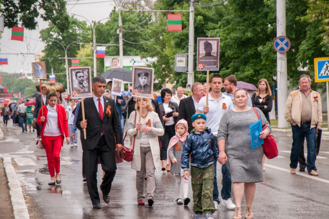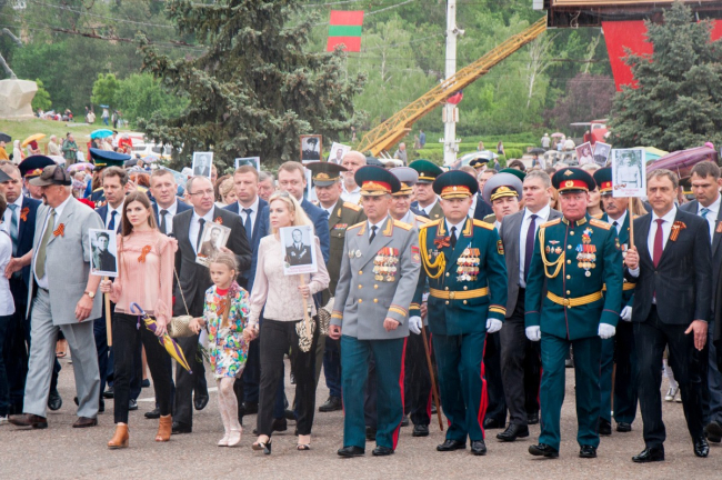 Вместе с ним в этой колонне были юнармейские отряды школьников, суворовцы, кадеты, курсанты военного института, российские военные, представители всех ветвей власти, общественные организации и тысячи тираспольчан. Под исполняемый хором «День Победы» они вспоминали историю победы своей семьи. Причём нередко этих историй было сразу несколько.