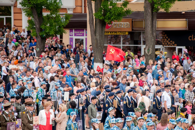 «Вот это всё проводится не просто по каким-то формальным признакам – лишь бы возложить цветы или почтить память, нет, этот праздник идёт именно от сердца… Вы видите тысячи портретов тех, кто погиб во время Великой Отечественной войны или умер после неё в мирное время. Нет такой семьи, которую бы обошла эта война; потом, победив, пережив голод, эти люди выстроили наше государство и дали нам шанс на будущее. Поэтому, конечно, наша задача – пронести эту историю и сохранить нить поколений от победителей, которые безвозвратно уходят, к нашему молодому поколению», – отмечал, идя с семьёй, президент Вадим Красносельский.