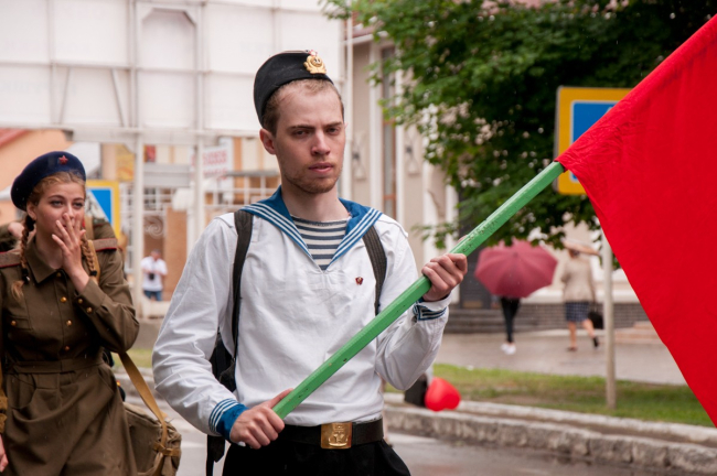«У меня эмоций – выше крыши, такая гордость, что мой дед воевал, что я иду в этом полку. И такое странное чувство, как будто всех людей какая-то невидимая нить соединяет, что есть что-то общее у всех, кто идёт в этой колонне, чувство гордости, сопричастности. Очень хорошо, что это всё проводится, если бы у нас ещё было бы больше каких-то реконструкций исторических, было бы вообще всё замечательно», – делится он впечатлениями.