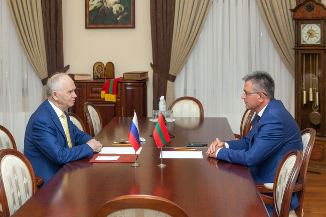 Вадим Красносельский и Фарит Мухаметшин говорили об успешной реализации совместных наработок, связанных с усовершенствованием работы выездного пункта консульского обслуживания в Тирасполе